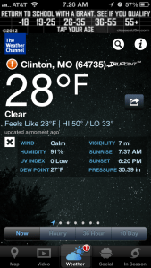 I’m always tempted to put on way too many clothes, but this morning I did OK. I didn’t get over heated at all. In the past I’ve tried to keep a log of what the weather conditions were, what I wore, and how I felt. It would be a lot easier if I kept that up and then referred to it before putting on that hoodie and then tying it around my waist half way through the run.