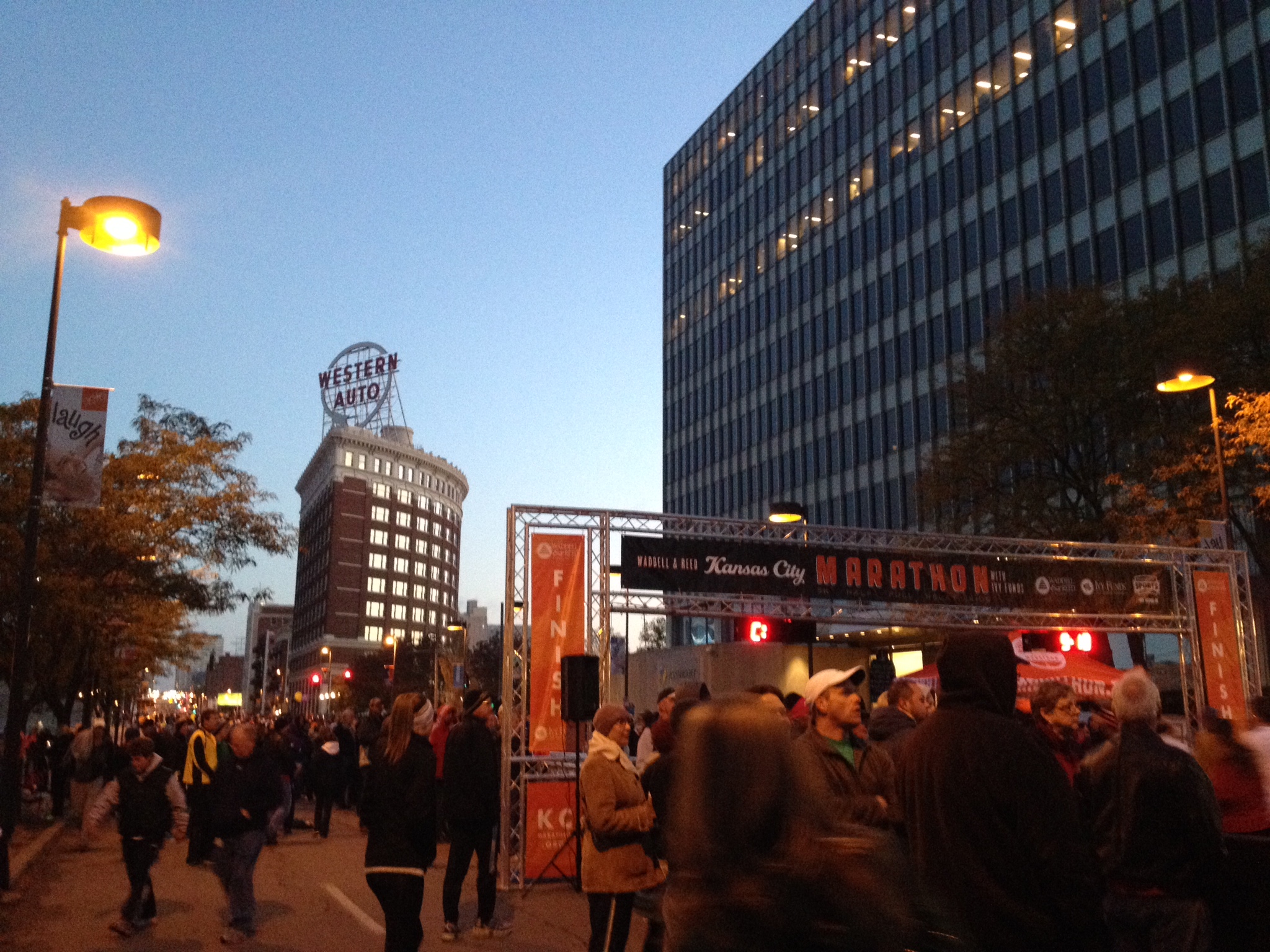 My wife, the kids, and I traveled to Overland Park on Friday, dropped off the kids at my mom’s, and then headed to the JC Nichols Country Club plaza to check in at the hotel. Though the marathon course went by our hotel, it was still three or four miles from the start/finish line. Once checked in, we went on over to Crown Center to pick up the race packet. I’ve completed several USAT triathlon events and check-in at those always requires an ID and a USAT card. Not so at the marathon, apparently. I gave my name and they handed me the packet. I could have been anyone. I thought that was interesting.