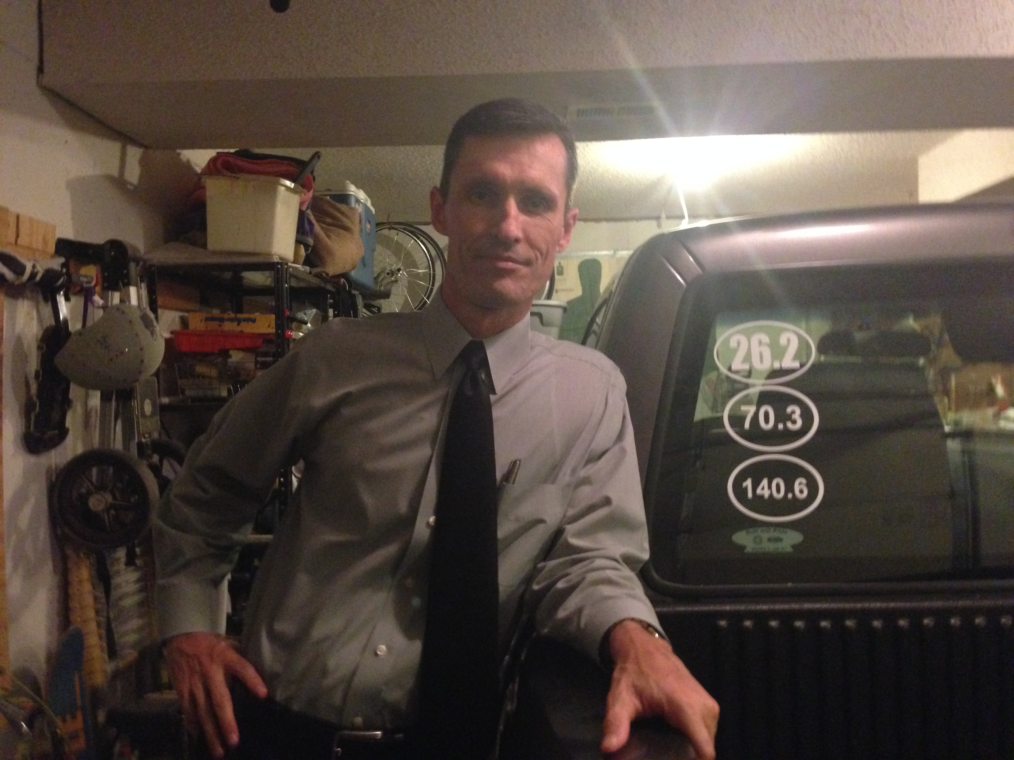 I posed for that not long after Ironman Louisville 2014. My truck was decal-free until the 140.6 and then I thought, “What the heck? People behind me at stoplights have no idea that I do endurance races. I have to let them know because they care so much!” So I affixed those three decals as soon as I could get them in from Amazon. I have now found, like people who get tattoos, it’s addictive and I’m looking for my next fix. (Just as an aside, I don’t have any tattoos, and I don’t have plans to get an M-Dot on my calf, or anywhere else, not that there’s anything wrong with that.)